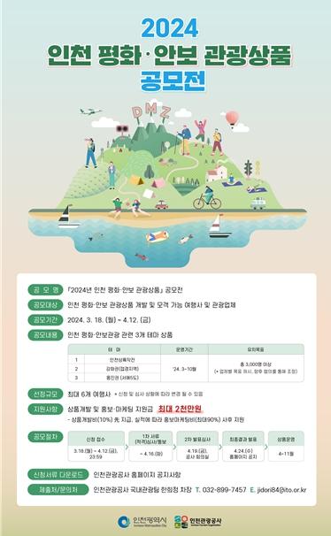 인천광역시와 인천관광공사는 새로운 여행수요 창출과 평화관광 가치 확산을 위한 ‘인천 평화·안보 관광상품 공모전’을 3월 18일부터 4월 12일까지 개최한다고 밝혔다.