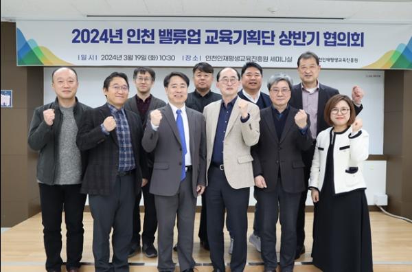 인천인재평생교육진흥원이 19일, 진흥원 세미나실에서 '인천 밸류업'사업의 성공적인 안착을 위한 자문협의체인 교육기획단을 구성하고, 첫 협의회를 열었다.