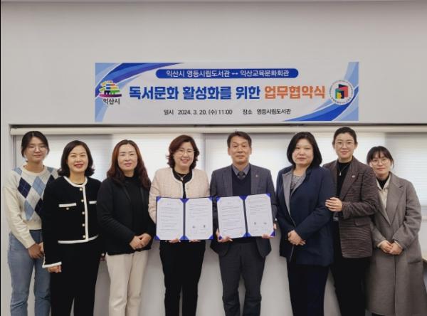 익산시 영등시립도서관은 전북특별자치도교육청 익산교육문화회관과 20일 업무협약을 체결했다.