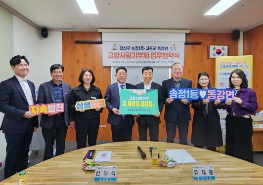 광주 광산구 송정1동이 20일 전라남도 고흥군 동강면과 고향사랑기부 활성화를 위한 업무협약을 체결했다.
