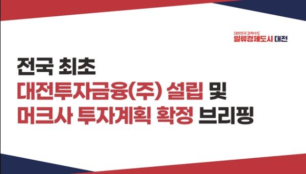 대전시는 오는 7월 설립을 목표로 추진하고 있으며, 앞으로 법인 설립, 신기술사업금융회사 등록 등 행정절차를 차질 없이 진행할 예정이다.