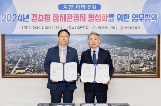 인천광역시 계양구는 지난 20일 구청 소회의실에서 한국관광공사와 ‘강소형 잠재관광지 활성화’를 위한 업무협약을 체결했다고 밝혔다.