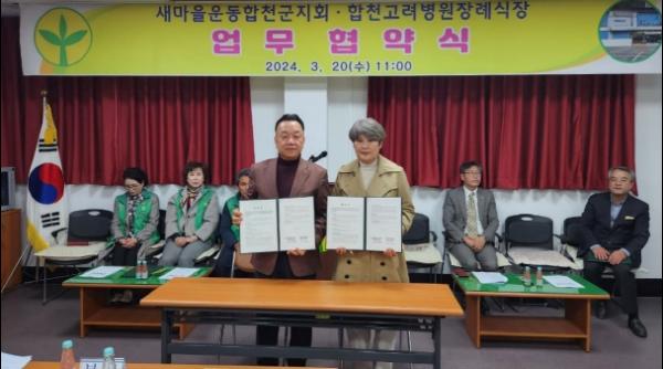새마을운동합천군지회, 고려요양병원, 합천고려병원장례식장은 지난 20일 새마을지회 회의실에서 지회회장단 및 읍면 협의회장, 부녀회장, 합천고려병원장례식장 및 고려요양병원 관계자 등 40명이 참석한 가운데 업무협약식을 가졌다.