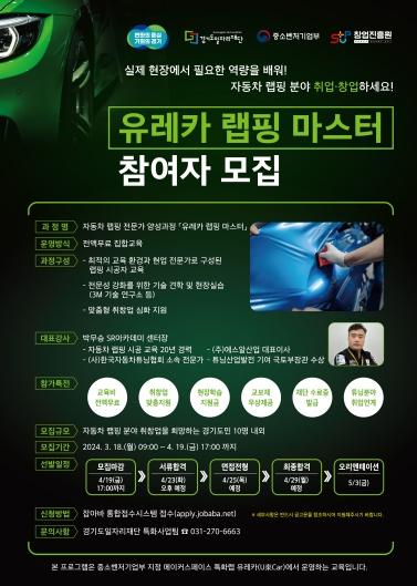 경기도일자리재단이 도내 자동차 랩핑 전문인력을 양성해 관련 분야로 취?창업을 지원하는 ‘유레카 랩핑 마스터 과정’ 참여자를 모집한다.