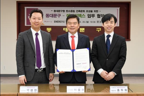 서울 동대문구는 25일 에너지엑스 주식회사와 탄소중립 건축문화 조성을 위한 제로에너지빌딩 업무 협약을 체결했다.