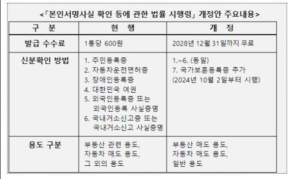 4월 2일부터 인감증명서(1통당 600원)와 동일한 효력을 가진 본인서명사실확인서(1통당 600원)를 2028년까지 무료로 발급받을 수 있게 된다.