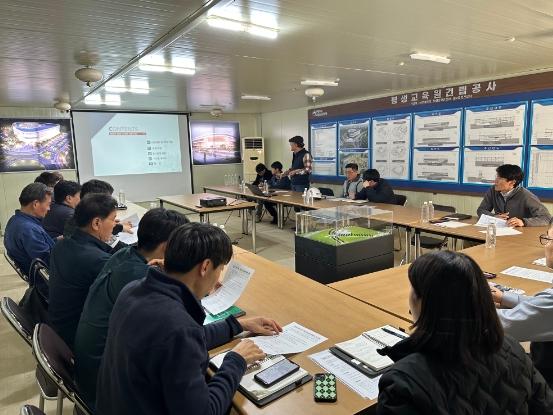특히, 대전지방고용노동청 안전·보건교육 담당자로부터 작업자의 추락 방지 등 안전 확보를 위한 방안에 대해 자문을 받고, 가시설물(비계, 동바리 등) 설치현황 및 계획과 관련하여 현장별 안전사고 예방방안에 대해 논의했다.
