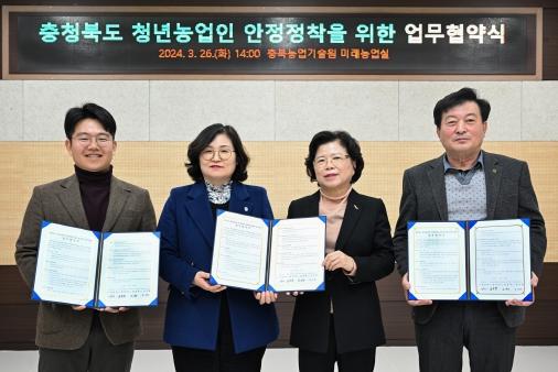 충북농업기술원은 3월 26일 청주YWCA, 충청북도4-H연합회, 한국4-H충청북도본부와 도내 청년농업인 농산물 판로 지원을 위한 업무협약을 체결했다.