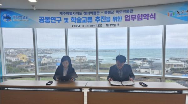 제주특별자치도 해녀박물관은 경상북도 울릉군 독도박물관과 지속적인 학술교류 및 공동사업을 추진하기로 하고 26일 업무협약을 체결했다.