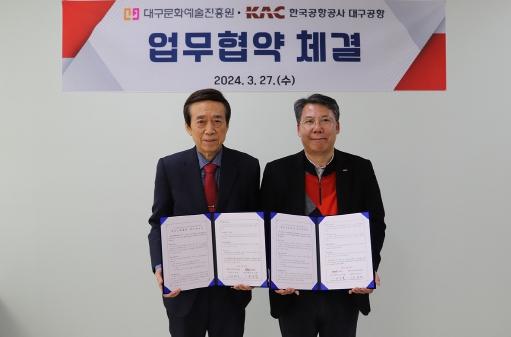 (재)대구문화예술진흥원은 27일 한국공항공사 대구공항과 지역 문화예술 확산 및 지역관광 활성화를 위한 업무 협약식을 개최했다.