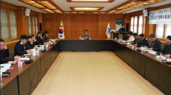 경상북도농업기술원은 27일 본원에서 사과, 포도, 참외 등 7개 수출농업기술지원단 단장과 전문가 등 20명이 참석한 가운데‘2024년 수출농업기술지원단 킥오프 업무협의회’를 개최하고, 올해 사업추진 방향 및 수출 확대를 위한 협력 방안을 논의했다.