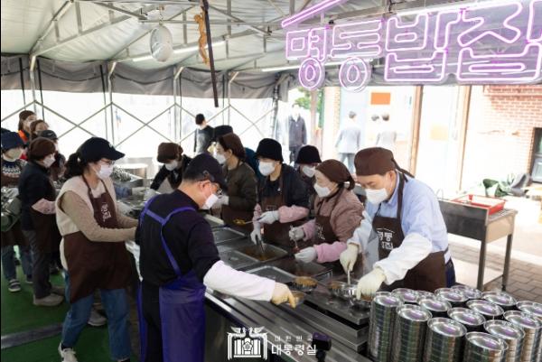 '명동밥집'은 매주 수·금·일요일마다 노숙인, 홀몸 노인 등 소외된 이웃들과 따뜻한 식사를 함께 나누는 무료 급식소로, 2021년 1월 개소 이후 2023년 말까지 30만 명 이상이 방문했으며, 매일(평일) 약 750명이 식사를 제공받고 있다.