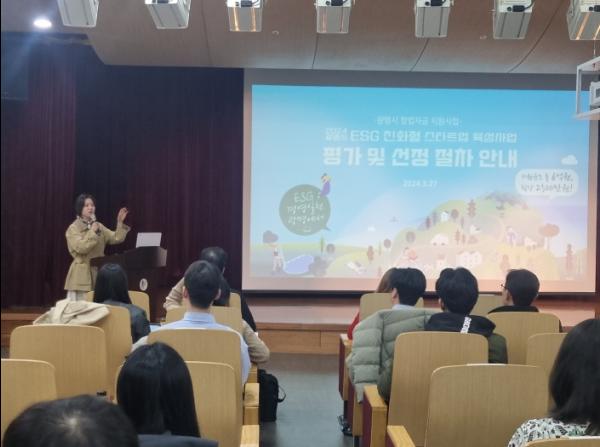시는 총 6억 원의 예산을 투입하여 ESG경영을 실천하고자 하는 지역 창업기업을 지원할 예정이다. 올해 사업 공모에는 총 32개 팀이 지원했다.