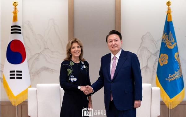 윤석열 대통령은 3월 27일 오후 캐롤라인 케네디 미국 존 F. 케네디 재단(이하 JFK 재단) 명예회장(現 주호주 미국대사)을 접견했다.