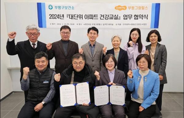 부평구 보건소와 e편한세상 부평그랑힐스 아파트가 28일 ‘대단위 아파트 건강교실’ 운영에 대한 업무 협약을 체결했다.