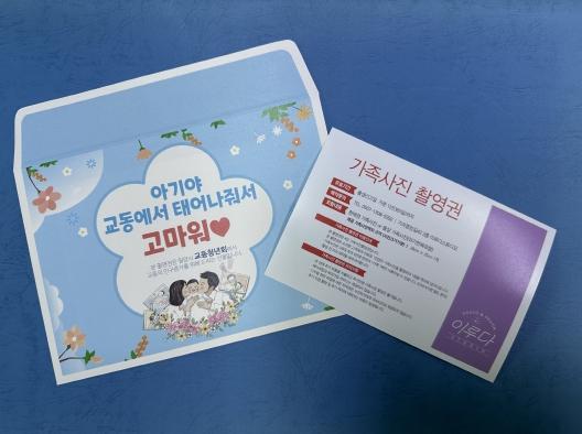 협약 내용으로는 교동청년회가 4월부터 청년회 자체 예산을 지원해 교동에 3개월 이상 거주한 신규 출생신고 가구 20세대에 세대당 1매씩 4인 가족사진 촬영권을 지원하게 되며, 교동행정복지센터에서는 출생신고 접수, 촬영권 배부관리, 사업 홍보 등 제반 행정절차를 지원하게 된다.