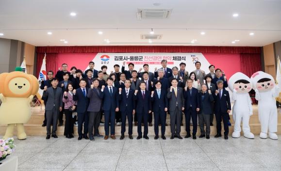 울릉군과 김포시는 지난 3월 28일 김포시청 대회의실에서 상호발전과 교류확대를 위한 자매결연 협약식을 체결했다.