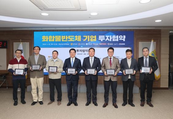 전남 무안군은 28일 전라남도와 ㈜웨이브피아, 제엠제코㈜, ㈜인프리즘, ㈜선코리아, 그릿씨아이씨㈜, ㈜올인텍, ㈜코스텍시스(서면) 등 화합물반도체 7개 기업과 투자협약을 체결했다.