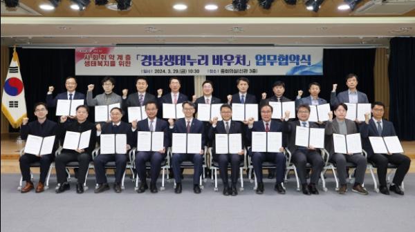 경남도는 29일 도내 17개 기관·기업체와 도청 중회의실에서 사회취약계층에 생태체험 기회를 무료로 제공하기 위한 업무협약을 체결했다.