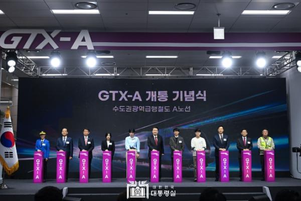 한편, 본격적인 행사에 앞서 대통령은 기념식 참석자들과 인사를 나눴다. 철도사업 협력방안 논의차 방한해 오늘 기념식에 참석한 사이드 알 아흐바비 UAE 에티하드레일 최고사업책임자가 대통령에게 "GTX-A 개통을 축하드린다"고 인사를 건네자, 대통령은 "전 세계 최고의 고속철도를 오늘 한국에서 경험하시길 바란다"고 화답했다.