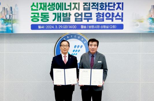 보령시는 지난 29일 시청 상황실에서 김동일 시장, 이병호 한국농어촌공사 사장 등이 참석한 가운데 보령시 공공주도 태양광집적화단지 조성사업 관련 보령시와 한국농어촌공사 간 업무협약을 체결했다.