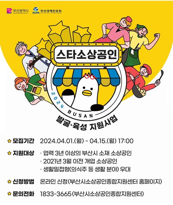 부산시는 (재)부산경제진흥원과 함께 오늘(1일)부터 4월 15일까지 '2024년 부산시 스타소상공인 공모'를 진행한다고 밝혔다.