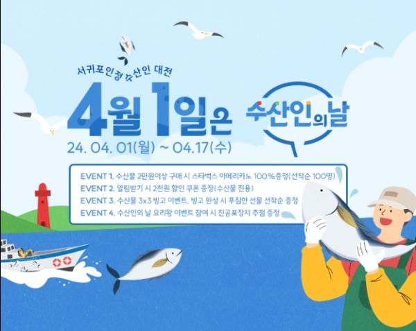 서귀포시가 운영하는 공식 온라인 쇼핑몰'서귀포in정'이 2024년 4월 1일 수산인의 날을 맞이하여 수산물 특별 기획전을 진행한다.