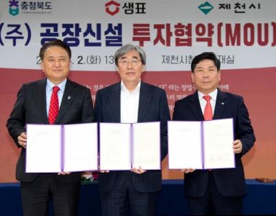 제천시는 2일 제천시청에서 국가대표 식품기업인 샘표식품 주식회사와 제2산업단지 공장 신설 투자협약을 체결했다.