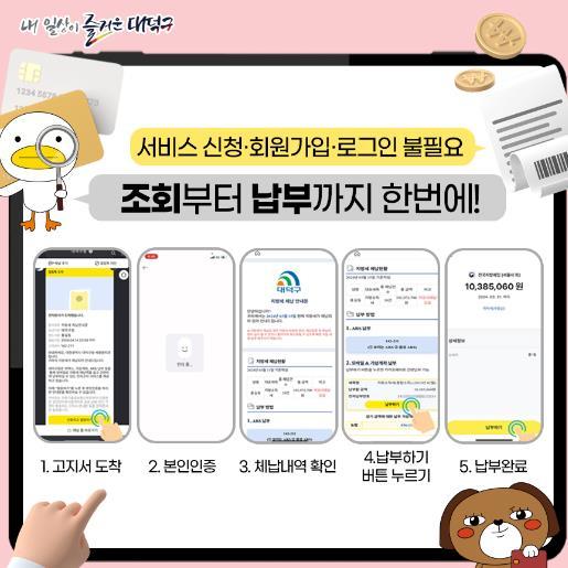 최충규 대덕구청장은 “모바일 전자고지 서비스를 통해 예산과 자원을 절감은 물론, 체납액 징수에도 큰 도움을 줄 것으로 기대하고 있다”라며 “앞으로도 더 쉽고 편리한 납세자 맞춤형 세무행정 서비스를 제공할 수 있도록 최선을 다하겠다”라고 말했다.