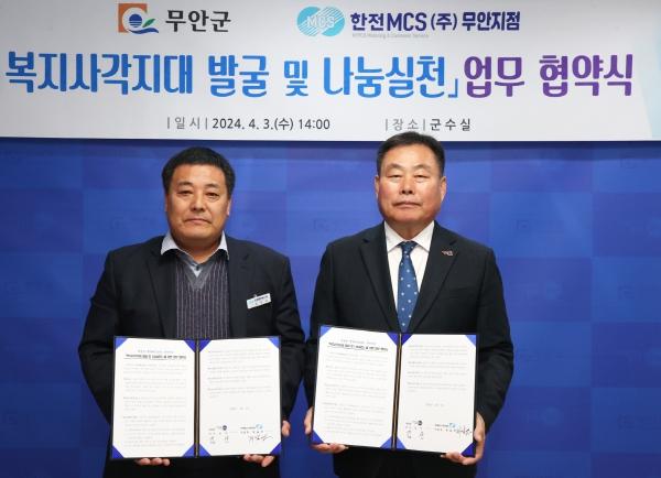 전남 무안군은 3일 한전MCS(주) 무안지점과 복지사각지대 발굴 및 나눔 실천을 위한 업무협약을 체결했다.