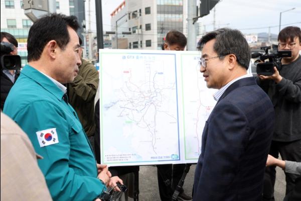 김동연 지사는 이날 “그동안 철도가 1m도 없었던 포천에서 7호선 연장선이 곧 공사를 들어가게 돼 기쁘다”며 “며칠 전에 발표한 GTX 플러스 노선 중 G노선이 만들어지면 포천 송우에서 (서울) 논현까지 30분이면 가는 획기적인 교통 변화가 있을 것이다. 포천시뿐만 아니라 경기북부의 새로운 시대가 만들어지는 좋은 계기를 만들 수 있도록 노력하겠다”고 말했다.