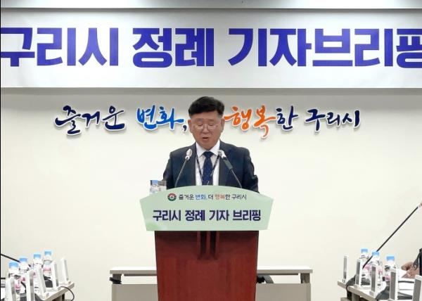 구리시는 4월 4일 오전 10시 시청 본관 3층 종합상황실에서 2024년 4월 1주차 정례 기자브리핑을 개최했다. 이날 브리핑에는 임재춘 홍보협력담당관이 발표자로 나서 경제재정국 소관 업무를 설명했다. 주요 내용은 ▲청년 소상공인 희망키움 특례보증 및 이자지원 사업 시행 ▲MZ세대 조직 적응력 강화 ‘청년 성장 프로젝트’ 추진 ▲2024 마신는 구리 축제 ▲구리사랑카드 5월 가정의 달 특별 인센티브 10% 지원 ▲갈매·인창지역 반려견 놀이터 조성 등 5건이다.