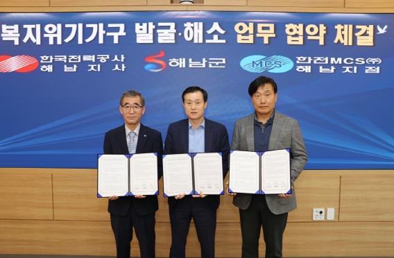 해남군이 한국전력공사 해남지사, 한전MCS주식회사 해남지점과 복지사각지대 위기가구 발굴 해소 및 이행을 위한 협약을 체결했다.
