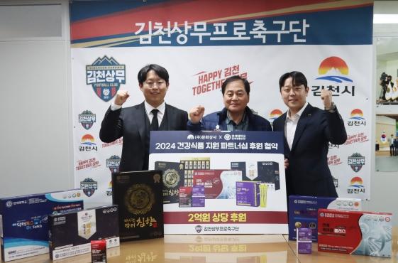 문화상사는 2022년부터 김천상무와 동행을 시작하며 프로 선수단에 건강식품을 제공하고 있다. 올해도 김천상무의 선전을 위해 2억 원 상당의 건강보조식품을 지원한다.