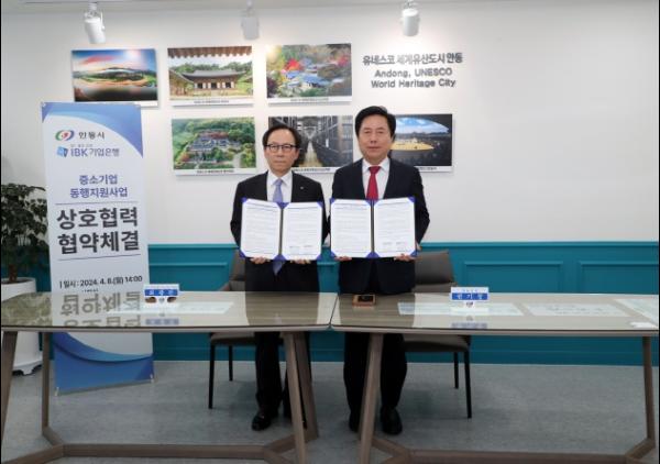 안동시는 4월 8일 권기창 안동시장과 최광진 IBK기업은행 부행장을 비롯해 관련 인사들이 참석한 가운데 ‘안동시 중소기업 동행지원 사업’업무협약을 체결했다고 밝혔다.