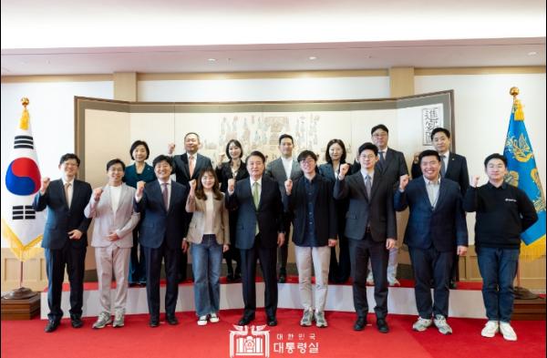 윤석열 대통령은 4월 8일 용산 대통령실에서 벤처와 스타트업계 청년 대표와 임직원을 초청해 오찬 간담회를 개최했다. 이번 간담회는 CES 2024 혁신상 수상 등 세계에서 인정받고 글로벌 진출에 앞장서고 있는 청년 스타트업을 격려하고, 지난해 8월 마련된 ?스타트업 코리아 종합대책? 추진 상황을 점검하기 위해 마련됐다.