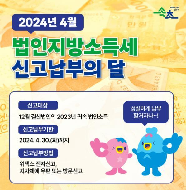 속초시는 관내에 사업장을 둔 ’23년 12월 말 결산 법인을 대상으로 30일까지(연결납세법인은 오는 5월 31일까지)법인지방소득세 신고 접수를 받는다.