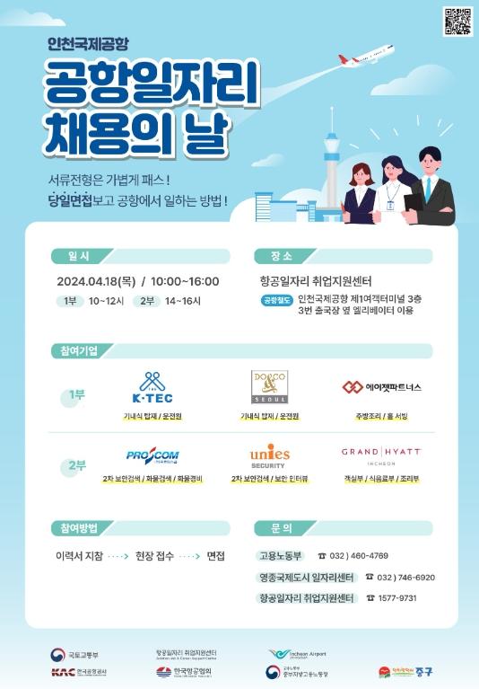 이번 ‘공항 일자리 채용의 날’은 항공산업 분야 일자리 확대와 관련 기업의 인력수급 문제 해결을 위해 마련된 행사로, 인천 중구와 중부지방고용노동청, 인천국제공항공사가 협업해 운영한다.