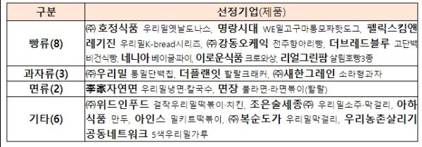 농식품부는 ①업체의 높은 인지도를 활용한 국산 밀 소비량 확대 가능성②비건·고단백 등 국산 밀 시장 고품격화, ③할랄인증 등을 통한 수출시장 개척 등을 감안*하여 총 19개 업체를 최종 선정했다. 해당 업체를 대상으로 국산 밀을 활용한 신제품 개발부터 시제품 생산, 홍보·마케팅, 수출지원까지 종합적인 지원을 추진할 계획이다. 또한, 해당 사업을 통해 연내 출시되는 다양한 국산 밀 제품에 대해서는 판매처 발굴, 홍보 지원, 박람회 개최 등 소비시장 확대를 위해 필요한 다각적인 지원을 할 계획이다.