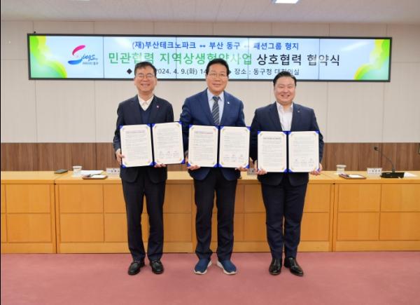 부산 동구는 9일 국토부 민관협력 지역상생협약 공모사업의 적극적인 대응과 원활한 사업추진을 위해 (재)부산테크노파크, 패션그룹 형지와 업무협약을 체결했다.