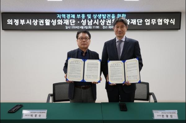 의정부시상권활성화재단과 성남시상권활성화재단은 4월 9일에 지역경제 부흥 및 기관 상생발전을 위한 업무협약을 체결했다.