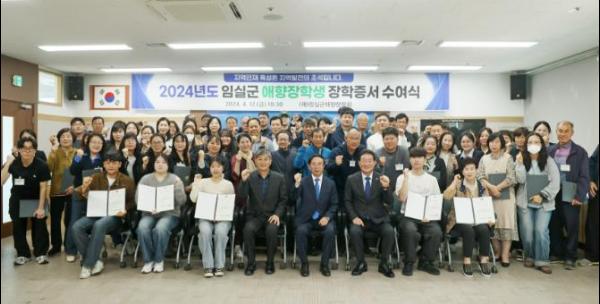 (재)임실군애향장학회가 12일, 학생 및 학부모 100여 명이 참석한 가운데 2024년도 임실군 애향장학생 장학 증서 수여식을 군청 농민교육장에서 진행했다.