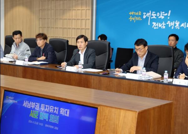 전라남도는 12일 서남부권의 산업단지 투자 활성화와 첨단·신성장산업, 지역특성화 업종 등 투자유치 확대를 위한 도-시군 투자유치 협력회의를 개최했다.