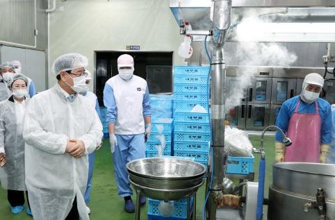 김영록 지사는 12일 수출용 냉동김밥 생산을 준비하는 장성 현대푸드시스템을 방문했다. 현장에는 김한종 장성군수와 박현숙·정철·김회식 전남도의원 등 20명이 함께했다.