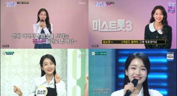 먼저 '미스트롯3-TOP7'에서 김소연은 첫 오디션 당시 모습을 공개했다. 그는 "여러분들께 언제 어디서나 웃음을 드리는 김소연이다"라고 자신을 소개한 뒤 박수를 치며 제작진의 박수까지 이끌어내는 발랄함으로 이목을 집중시켰다.