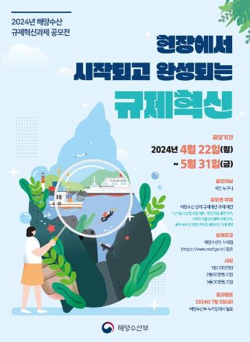 해양수산부는 4월 22일부터 5월 31일까지 40일간 해양수산 분야 규제혁신 과제를 발굴하기 위한 대국민 공모전을 개최한다.
