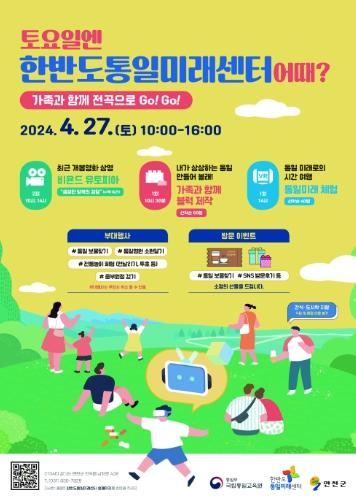 통일부 국립통일교육원 한반도통일미래센터(경기도 연천군 전곡읍 소재)는 4월 27일을 시작으로 매월 한 차례 국민 누구나 참여할 수 있는 개방 행사를 진행한다고 밝혔다.