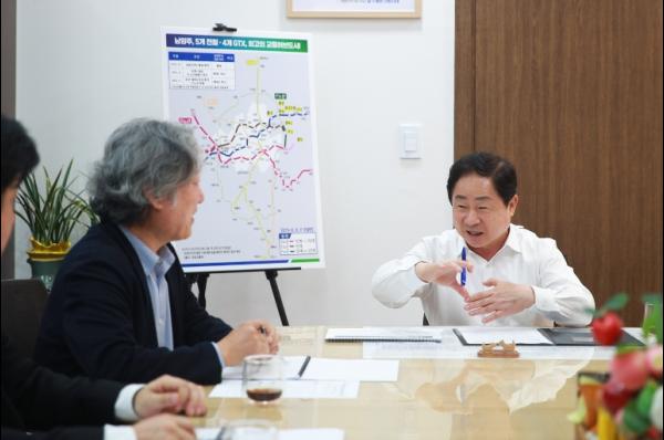 주광덕 시장은 “명실상부 사통팔달의 교통 허브 도시로 거듭나기 위한 핵심사업인 GTX-D·E·F 노선이 제5차 국가철도망 구축계획(안)에 반드시 반영돼야 한다”라며 “경기도가 건의하는 GTX 플러스 G 노선안에 남양주가 포함된 만큼 지난 3월 착공한 GTX-B를 포함하여 남양주 5개 GTX 시대를 열 수 있도록 행정 역량을 최대한 발휘해주길 바란다”라고 전했다.
