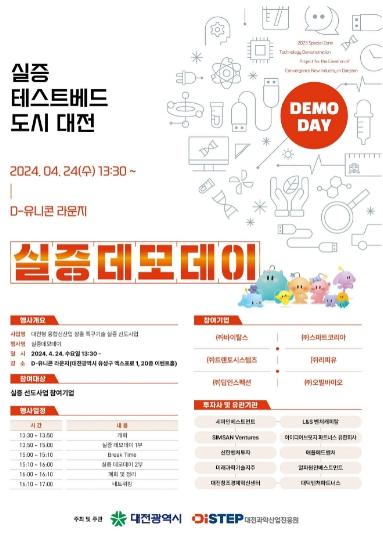 대전시는 24일 D-유니콘 라운지에서 실증사업에 참여한 우수기업을 대상으로 투자 유치 기회와 네트워킹 제공을 위한‘실증데모데이’를 개최한다.