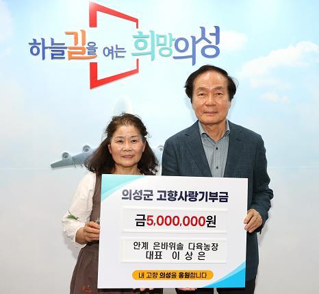 의성군은 18일 이상은 안계 은바위솔 다육농장대표가 고향사랑기부금 개인최고액인 500만원을 의성군에 기탁했다고 밝혔다.